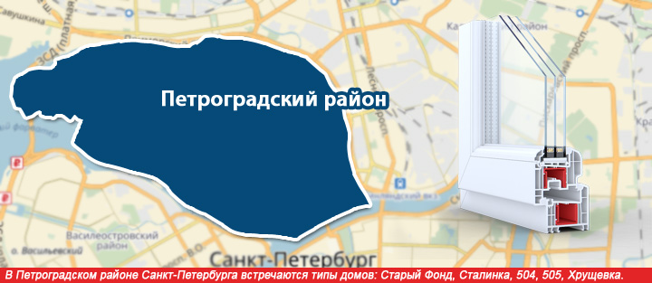 Петроградский район располагается на территории семи островов, соединяясь с другими районами Санкт-Петербурга посредством мостов и развитой транспортной инфраструктуры, к которой относятся автомагистрали и станции метро. Застройку Петроградского района можно охарактеризовать, как плотную, что значительно нагружает транспортную систему и приводит к частому образованию пробок. Окна в Петроградском районе следует выбирать, отдавая предпочтение стеклопакетам с повышенной шумоизоляцией. Также часто приходится подбирать цвет пластиковых окон в тон фасадов зданий. В застройке Петроградского района в СПб преобладает старый жилищный фонд, который характеризуется высокими оконными проемами.