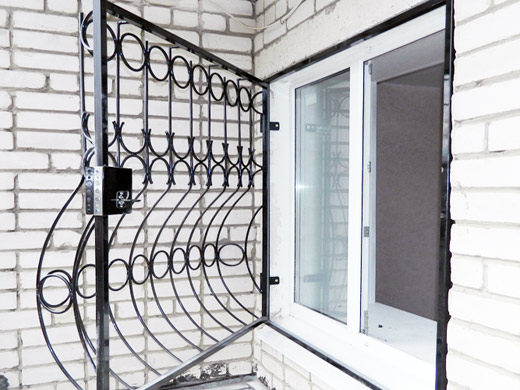 Открывающиеся съемные либо распашные - наиболее востребованы распашные решетки, которые открываются также удобно как окно, на них устанавливаются замки. Открывающиеся решетки обеспечат, в случае необходимости, пожарную эвакуацию.